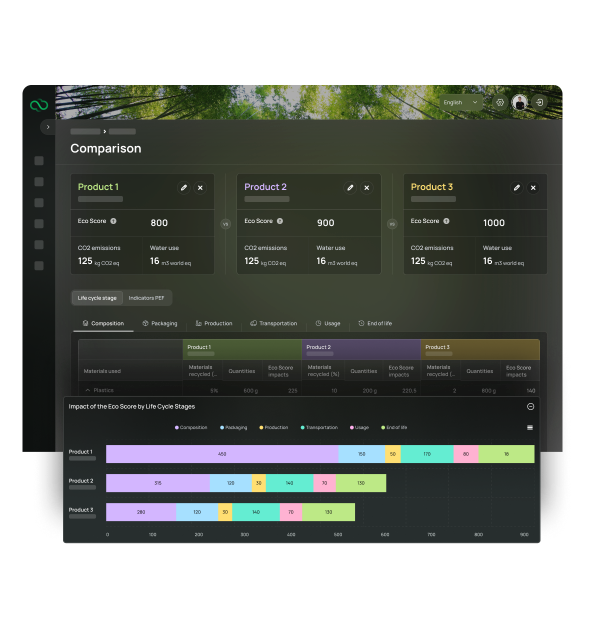 Track, analyze and manage your company's impact data using scalable LCAs aligned with ISO 14040/44 in order to identify areas of improvement and to meet sustainability targets across products and business activites. From product LCA to corporate sustainability, centralize and report results with the ability to deliver environmental impact and actionable insights in the hands of your decision makers.